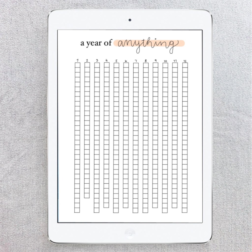 So here’s my digital bullet journal tracker. I’m linking a copy to the same file as in the image, and one with a blank title so you can write in your goal. Hint: you don’t have to wait for Jan 1st to do something important.